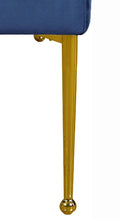 Rest your bones on this beautiful Owen Navy Velvet Bench. This handsome bench has an elegant demeanor that will not escape the attention of all who enter your space. The sophisticated polished gold legs have a ball design for a distinctly chic appearance, and the bench is upholstered in rich velvet for a soft and supple feel against your skin. Position it at the end of the bed as a handy seat, or use it in an entryway to give people a spot to sit and put their shoes on before heading out the door.