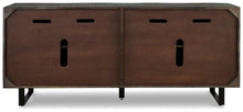 This accent cabinet has a mixed-material look that seamlessly slips into any contemporary scene. It impresses with the raw beauty of its saw mark effect and grayish brown glaze. Sleek black metal hardware provides visual balance. With two shelves behind the pair of double doors, this piece gives you storage and superior style all in one.