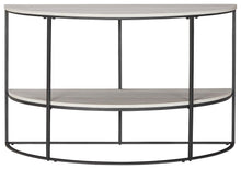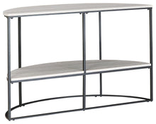 Entertain with ease with this casual, contemporary sofa table. Designed for the modern tastemaker, the minimalist design wows with metal legs and a laminated surface with a whitewashed effect. A lower display shelf provides ample space for books and baskets, or for showcasing your special decor accessories.