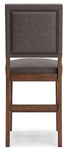 Charmingly chic, this counter height stool brings a casually cool touch to your dining area. Inspired by bomber jackets, the sleek faux leather upholstery has a delightfully vintage appeal. Goldtone nailhead trim rounds out the look.