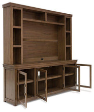 Elevate your entertainment experience with this TV stand with hutch. A functional focal point for your living room, it's defined by a richly versatile finish. Instantly upgrade game days and movie nights—the large-scale silhouette easily hosts flat screens. And with stunning glass front doors and a bookcase surround, you can sleekly show off decorative details, DVDs or records.