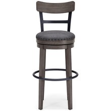 Bring a relaxed yet refined sense of good taste to a space with this upholstered swivel bar stool. The sturdy wood frame with contoured backrest is beautified with an antiqued gray wash finish that�s easy on the eyes. Rest assured, this bar stool caters to your comfort with a cushioned seat with gray textured fabric accentuated with nailhead trim. Sensible swivel design keeps you in the flow of conversation.