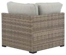 This cool, casual outdoor chair will raise the comfort level and visual appeal of your outdoor living space. Made of handwoven wicker in easy-going beige tones, the corner chair with cushion blends beautifully into your lanai or pool and patio area with thick, comfy cushions wrapped in Nuvella® high performance fabric that is stain resistant, fade resistant and easy to clean. It can be used on its own or paired with other pieces of the matching sectional to create a space that holds up to Mother Nature and ages gracefully for years of enjoyment. Four pillows are thrown in for added comfort and a splash of color.
