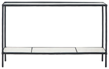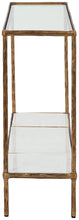 Classic in design with a dash of textural appeal, this console table provides both flair and function. It's ideal to rest behind a couch or in an entryway, with a glass tabletop and white marble lower shelf offering the perfect perch for decorative pieces. The frame's antiqued black finish has an edgy look that remains versatile, suiting spaces from casual to contemporary.