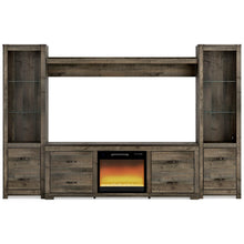 Entertain a rugged yet refined sense of style with this entertainment center. Rustic finish and plank-style details pay homage to reclaimed barn wood, while metal banding with nailhead accents infuses a touch of industrial cool. Ultra clean lines ensure a look that can go from the country to the city and feel equally at home. What really turns up the heat: an electric infrared fireplace insert with faux firebrick surround that operates with or without infrared heat and includes a multi flame feature, 7-level temperature setting, five brightness levels and LED glowing embers effect.