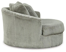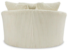 Plush and posh. Showcase your eye for on-trend texture with the statement-making cord upholstery of this oversized swivel accent chair. Its stunningly soft fabric entices in a warm neutral hue, complementing contemporary color palettes. Sink into the spacious cushion and plan to stay a while�this cozy living room chair highlights your high-end approach to comfort and style.