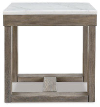 This square end table is simple in design but big on style. Finished with a trend-right grayish brown wood tone, its bold, blocky profile and natural marble top are timeless classic choices that work so well with a variety of settings. Adding to its beauty, the marble top's color variations, fissures, mineral deposits and veining are naturally formed and are not defects.