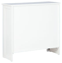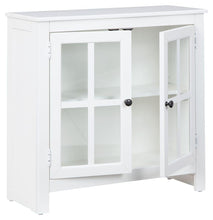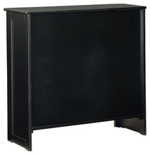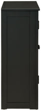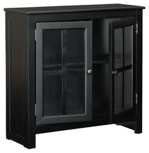 Function and style merge perfectly with this accent cabinet. Constructed of wood in a black finish, the accent cabinet makes a great case for casual contemporary design. Two doors and an adjustable shelf make for multiple storage solutions. Black finished metal door pulls add a finishing touch and a lattice door front with clear inset glass allows you to show off what you store.
