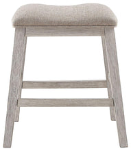 This upholstered stool invites you to raise the bar on small space living. An inspired choice for coastal chic or modern farmhouse settings, this comfortably cushioned stool sports a grayish white finish with rub-through effect for timeworn appeal.