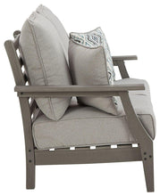 It�s the dawn of a new day for gray. Embrace the style trend with this outdoor loveseat. Crafted of HDPE material that combines the exceptional durability and weather resistance you need with the �wood look� you love, this comfortably cushioned loveseat takes outdoor living to a whole new level. Rest assured, the thick seat and back cushions and throw pillows are wrapped in our exclusive Nuvella® high-performance fabric that�s fade resistant, stain resistant and a breeze to clean.