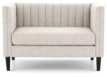This settee boasts couture-inspired detailing with modern allure. Channel tufted arms and back design with wood tapered legs in dark brown elevate its luxe appeal with feel-good beige colored polyester fabric putting comfort in style.