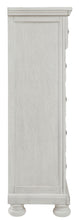 Elegant, timeless furnishings take your bedroom to the next level. Nothing does that better than this chest. The antiqued white finish with a wonderful grain texture oozes sophistication, while the dark bronze-tone hardware adds an ornate touch. A felt-lined top drawer rounds out the piece for the ultimate tasteful bedroom.