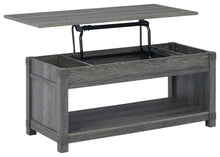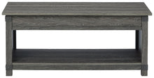 Raise the bar on modern farmhouse design with this lift top coffee table. Sporting a grayish brown replicated wood grain effect, its handy spring-loaded mechanism brings the tabletop closer to you. This versatile table makes it easier than ever to eat, work or play from the comfort of your sofa.