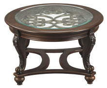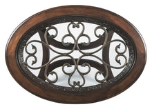 This oval coffee table deserves a toast for incorporating so many elements so seamlessly. Swirls of metal accents add a lovely dimension under a beveled glass inset tabletop. Their fanciful pattern is echoed in the carvings and curves of the richly stained legs and stretchers.