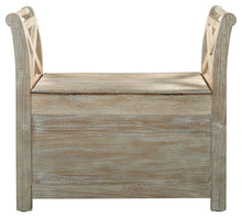 Get a dose of bohemian bliss with this accent bench. Whitewashed wood finish fits in effortlessly with your existing decor. Carved floral pattern beautifully covers the bottom front as X-design arms entice from above. Ready for more? Lift the seat for plenty of storage action underneath.