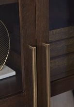Chic and sleek, this accent cabinet satisfies your taste for contemporary design. Its dark brown finish is neutral and refined, while antiqued brass-tone hardware adds a touch of glamour. And with glass door fronts and two shelves, it's easier than ever to display and store in striking style.
