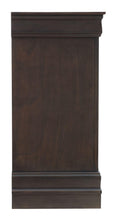 Traditional Louis Phillippe styling. Made with select hardwood solids, Okoume veneers and engineered wood substrates. Finished with a deep brown color. Dovetailed drawer construction with metal center guides. Antique bronze colored bails. Stylish sleigh bed design.