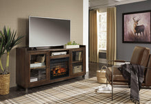 For fans of urban industrial design, this XL TV stand with fireplace insert clearly steals the show. Its blend of acacia veneer and wood is beautified with an oiled walnut-tone finish for a highly contemporary aesthetic with grainy, earthy character. Infusion of dark bronze-tone metal takes the cool character to another level. What really turns up the heat: an electric infrared fireplace insert with faux firebrick surround that operates with or without infrared heat and includes a multi flame feature, 7-level temperature setting, five brightness levels and LED glowing embers effect.