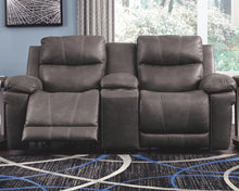 Coming in hot! Discover this power reclining loveseat with center console and two cup holders. Top-of-the-line faux leather fabric gives you the upscale look you want for less. Not to mention it feels incredible. The extended ottomans provide extra lengths for leg comfort. Want to watch TV or read in comfort? Easily fix your view with the power adjustable headrest. Complete with dramatic, jumbo stitching, this piece is out to capture your heart with style and comfort.