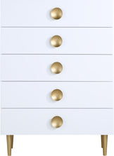 Watch your d?�cor cascade to new heights when you bring home this Zayne chest. It features a rich white finish that sets an instant contemporary vibe in your space. Its brushed gold metal legs and handle add a sophisticated slant to the piece���s design, ensuring it���s a simple and easy fit with other modern pieces. Pair this unit with other items in the Zayne collection for a seamless presentation in your room.