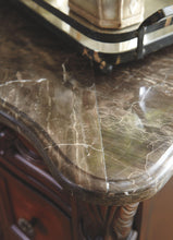 Inspired by the grandeur and grace of Old World style, this nightstand is nothing short of stunning. A choice blend of materials is accented by detailed ornamental appliques. A marble parquetry top tops off the opulence. Three smooth-gliding drawers serve your bedside storage needs exceptionally well.
