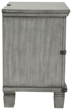 What's old is what's new with this nightstand. Serving up a fresh look in urban farmhouse style, this eclectic piece features a light weathered gray finish with dark aged bronze-tone bar pulls and metal straps for a casually cool sensibility. Profiled drawer frames, thick-profiled top moulding and tapered legs are the earmarks of timeless design.