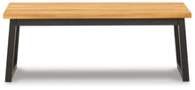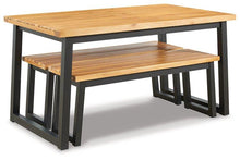 Bring an uptown feel to an outdoor space with this outdoor furniture set. Designed to comfortably seat four, this ultra-cool outdoor dining table and bench set a new standard in outdoor living. The tabletop and bench seats are richly crafted of acacia wood with wonderful tonal variation. Tubular steel legs are sleek, sturdy and slightly canted for an interesting angled effect.