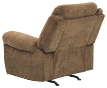 How can you not cuddle up in this decadently plush rocker recliner? Spicing things up in a warm and earthy nutmeg brown, this richly styled recliner is covered in a heavyweight padded velvet upholstery for a sense of luxury. Distinctive elements include wraparound padded armrests for a cool twist.