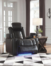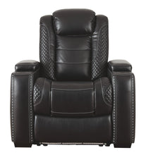 This power recliner takes its cue from luxury automobiles with lattice- and cross-hatch stitching, for a richly tailored aesthetic that gives you plenty of reasons to celebrate. Sumptuously padded cushions and dramatic midnight black faux leather upholstery add to the indulgence. When it�s time to rev up the action, the recliner�s reclining bucket seat, Easy View™ power adjustable headrest and USB charging port keep you in the driver�s seat.