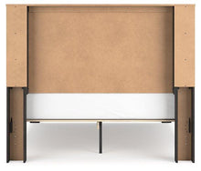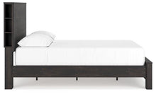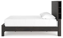 Less. Never more beautiful. Rich in rustic yet contemporary character and decidedly simple on the details, this king panel bookcase bed. Easy-on-the-eyes elements include a block base and a rustic charcoal finish that gives the wood grain aesthetic a highly modern feel. A space-saving efficient storage option, open cubbies along both sides keep your favorite reads within easy reach. And it's right up to speed, with slim-profile USB charging ports.