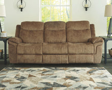 How can you not cuddle up in this decadently plush reclining sofa. Spicing things up in a warm and earthy nutmeg brown, this richly styled reclining sofa is covered in a heavyweight padded velvet upholstery for a sense of luxury. Distinctive elements include wraparound padded armrests for a cool twist, along with a few hidden surprises. Pull the center back cushion forward to reveal a drop-down table with dual cup holders and AC power and USB ports. Under the center seat: a roomy storage drawer designed to make every inch of space count!