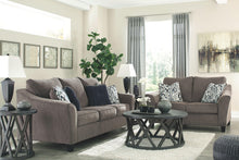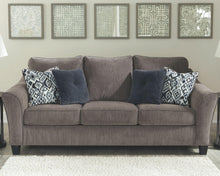 This sofa sets the scene for a modern space full of casual flair. Its textured chenille with solid microfiber upholstery provides a luxuriously soft feel that�s inviting. Gently flared arms and plush seat cushions welcome comfort and relaxation. The on-trend slate-colored upholstery offers a perfect background for the four decorative pillows to pop with beauty.