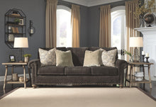 Everyone can have the best seat in the house with this sofa. Nailhead trim puts the finishing touches on the traditional roll arms you love. Reversible seat cushions with high-pile chenille fabric keep your sofa feeling plush. Textured velvet and old world-inspired jacquard pillows add another layer of comfort. Turned feet in burnished light brown finish show that style and quality flow from top to the bottom.