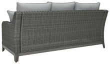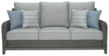 Add a distinguished touch of gray to your outdoor living space with this sofa. It's made with resin wicker over an aluminum frame for a relaxed look that provides seasons of enjoyment. Rest assured, the thick seat and back cushions are wrapped in Nuvella® high-performance fabric that�s fade-resistant, stain-resistant and a breeze to clean.